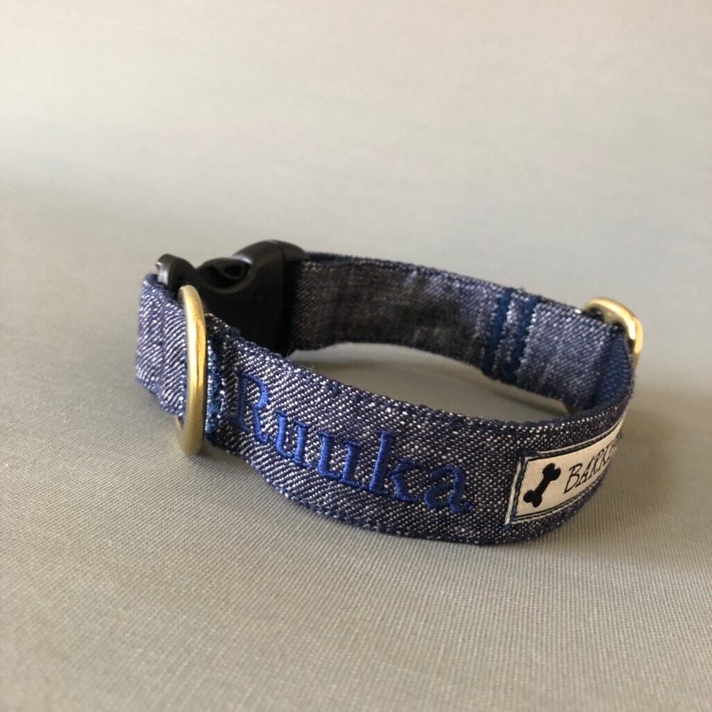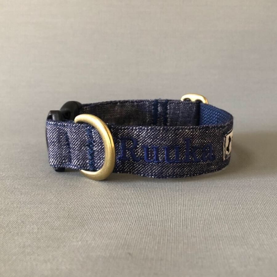 持ち手部分がデニム生地のリードもオーダー可能です。お問い合わせよりご相談下さいませ。