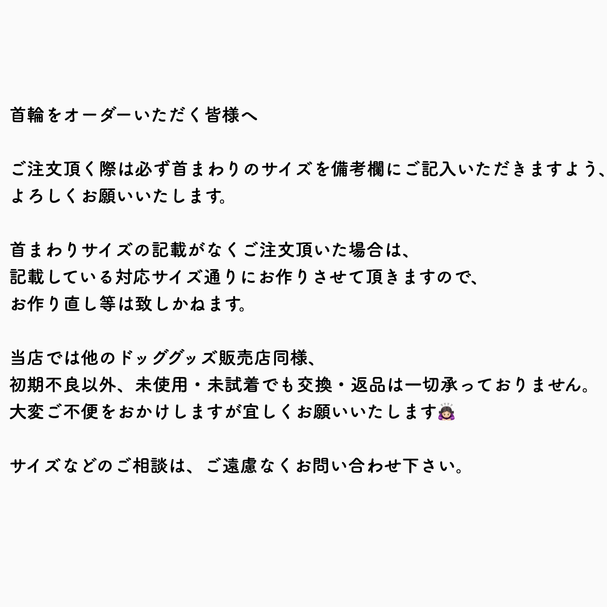 (犬種によっては首まわりに合わせてサイズを決めると、頭が入らない場合がございますのでお気を付け下さい。)