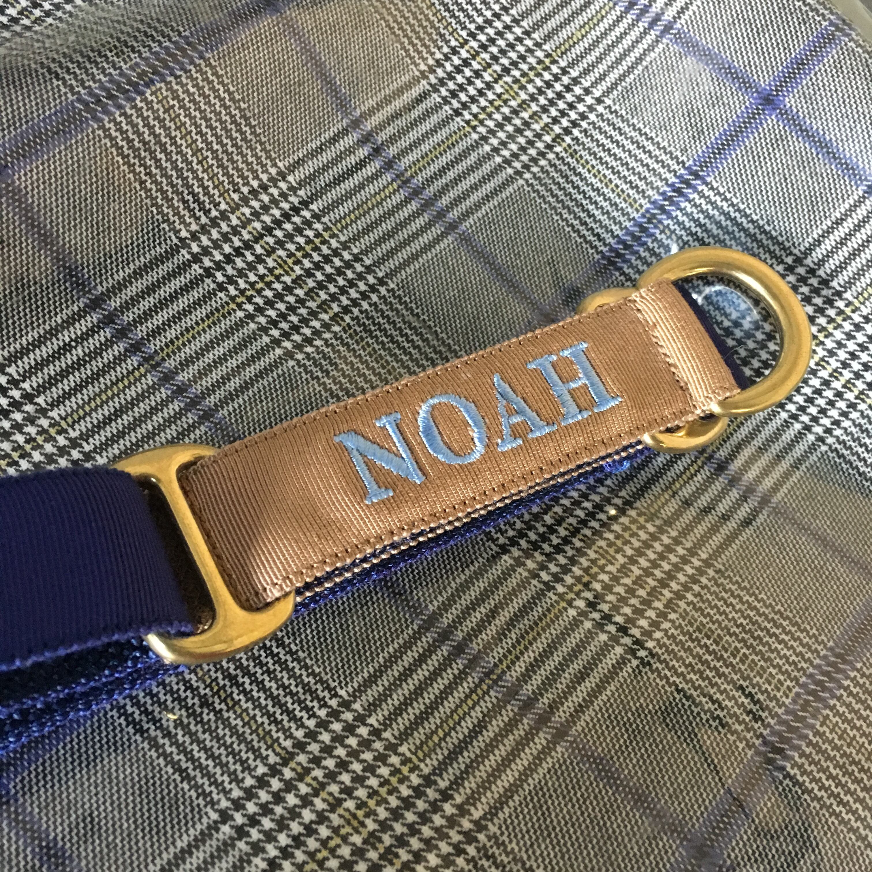 バイカラー(2.5cm幅)のマーチンゲールカラー。