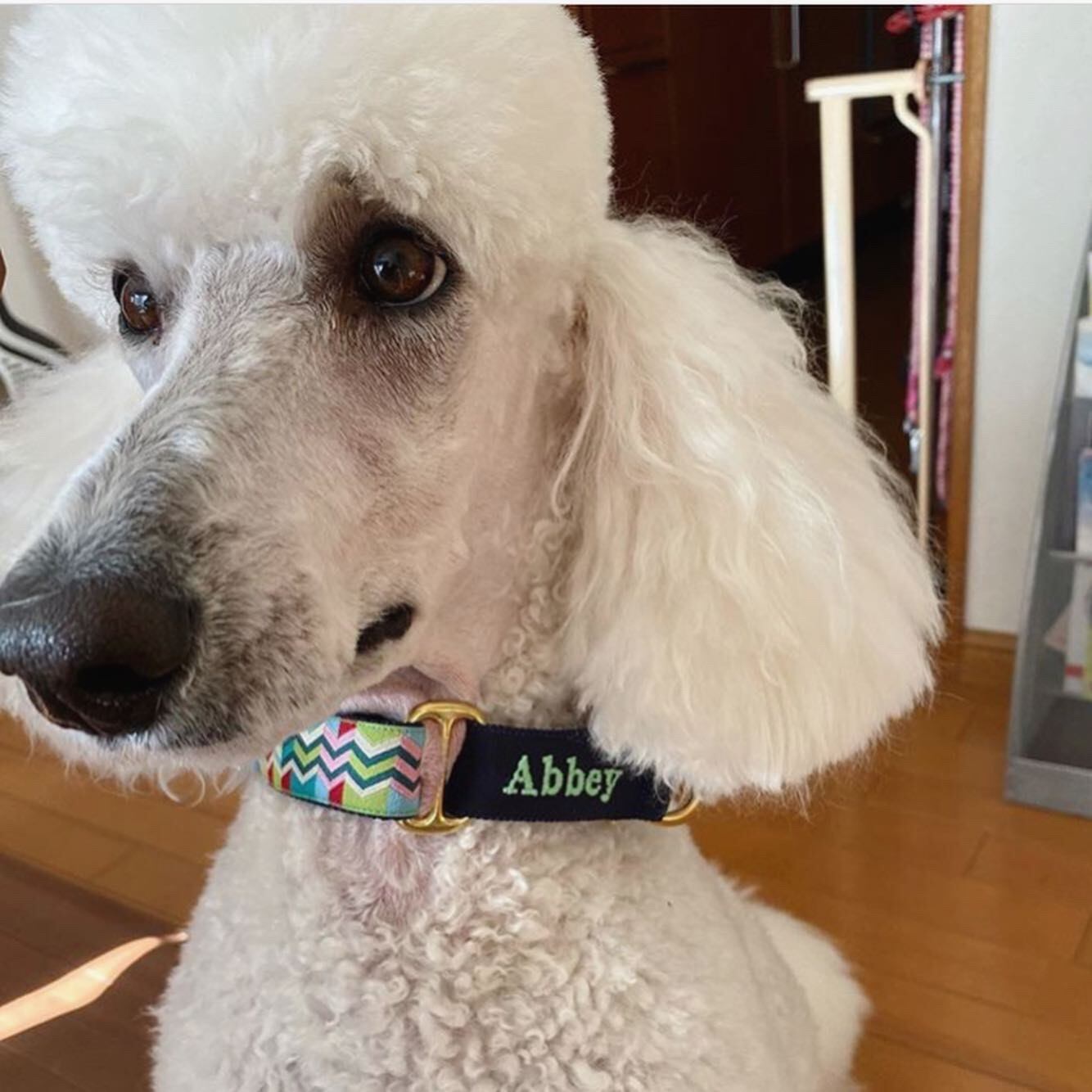 あまり見かけないデザインなので、ドッグランやカフェで一際目を引くマーチンゲールカラーです❤︎
