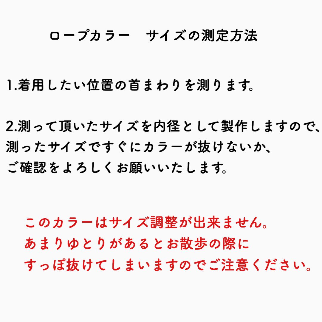 ロープカラーはサイズの調整が出来ませんのてま、ご購入の際に以下を備考欄にご記入いただきますよう、よろしくお願いいたします。