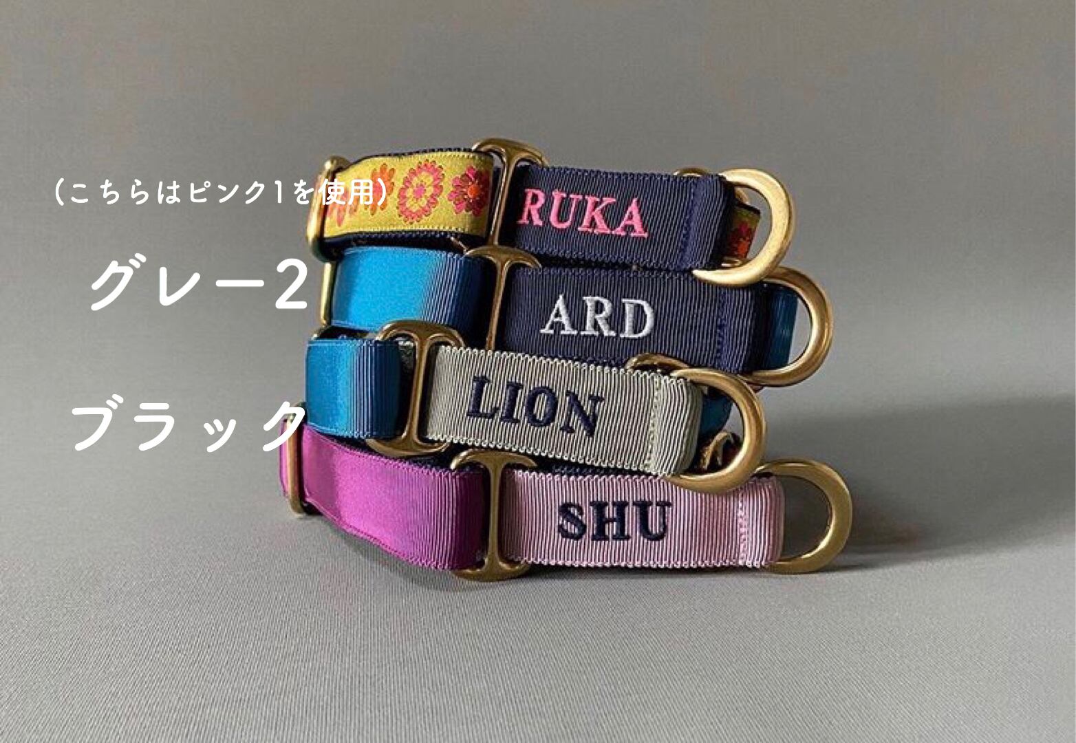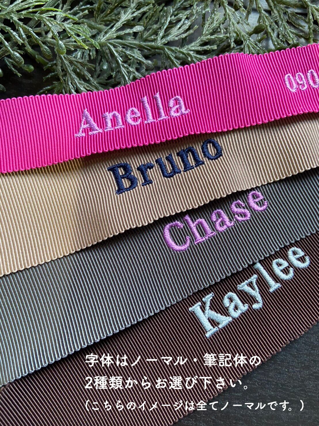 マーチンゲールカラーの刺繍はお名前のみを表に刺繍させて頂きます。